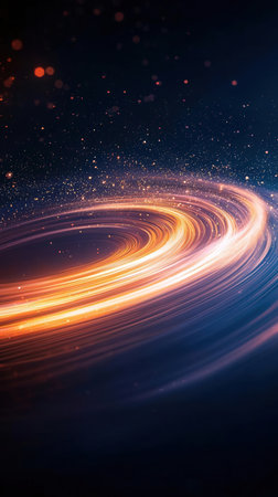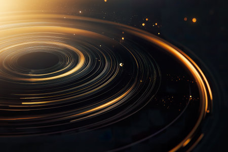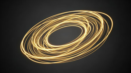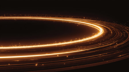 A captivating abstract image showcasing dynamic circular motion with vibrant golden light trails against a dark background, conveying energy and creativity.