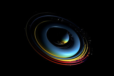 Futuristic artwork with concentric circles and vivid color overlays floating in black space