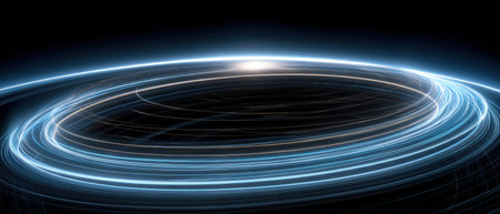 Captivating light trails form a glowing circular pattern against a dark, mysterious background.