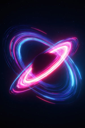 A captivating illustration of Earth in space, beautifully surrounded by luminous rings and vibrant trails, symbolizing the wonders of our universe and cosmic phenomena.