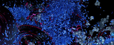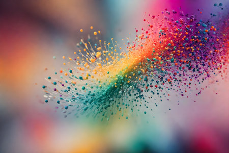 Abstract colourful particles explosion on blue background.
