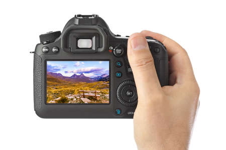 Camera and Durmitor Montenegro image isolated on white background