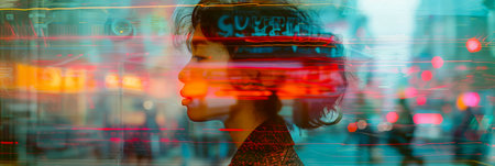 Urban Dreams: Abstract Portrait Blending Cityscape and Emotion.