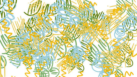 Crayon Wallpaper. Curve Background. Gold and Azure Children Doodle. Multicolor Brush Illustration. Rainbow Crayon Wallpaper. Abstract Template. White and Yellow Pencil Image.