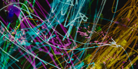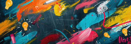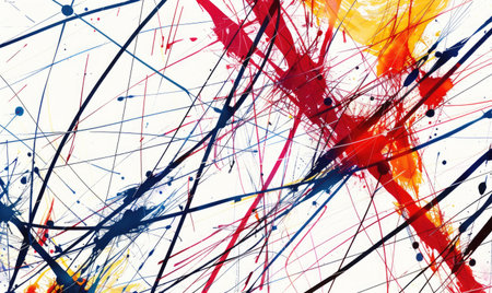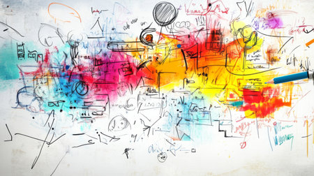 Vibrant abstract background filled with colorful splashes, scribbles, and shapes. Perfect for creative projects, conveying energy and artistic expression.