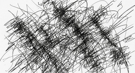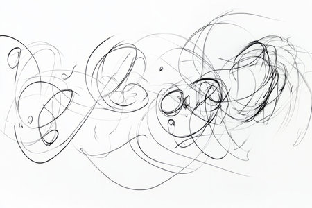 Hand-drawn scribbles and sketches in black ink, forming fluid, organic shapes that evoke a sense of creativity and human expression on a clean white canvas.