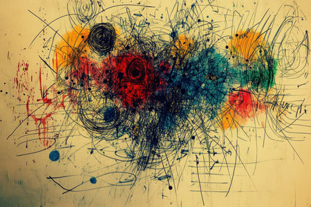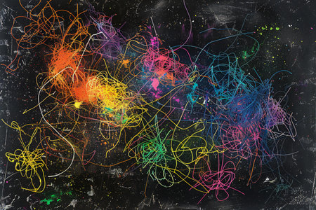 Colorful chaos of playful scribbles creating a dynamic artistic background