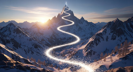 Glowing trails of light winding through the darkness AI generated