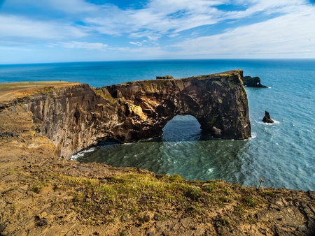 Cape Dyrholaey is the most southern point of Iceland. It is known for its massive gate made by volcanism