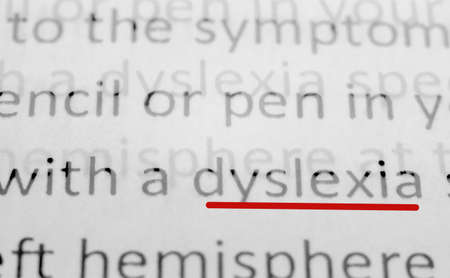 macro photography of the word dyslexia from the newspaper underlined in red marker