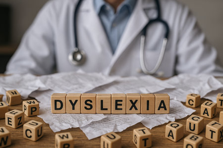 Brain Model Next to Letters Spelling DYSLEXIA, Representing Neurological Basis of Learning Disability