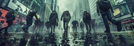 Selective focus of Zombies are walking on the city streets.