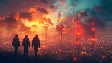 Urban dreamscape: silhouettes in a city overlay