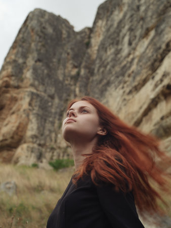 woman model travel tourism mountains oceans high cliffs