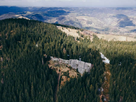 Mountain trip, cable car ride with mountain and forest view.