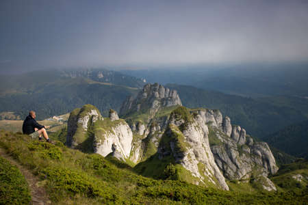 Lonely traveler in Ciucas mountains, Romania. Most scenic mountain from the Carpathians.