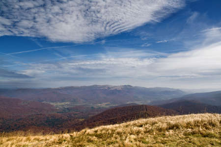 Mountain view with blue sky and clouds (Bieszczady - Poland)
