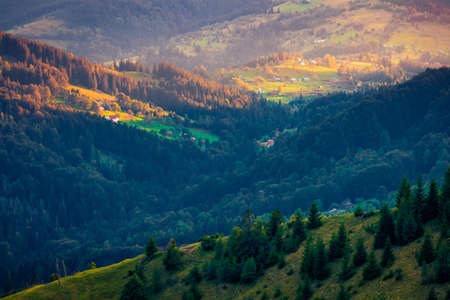 Picturesque evening landscape illuminated by the sunset. Location place of Carpathian mountains, Ukraine, Europe. Image of exotic summer scene. Artistic wallpaper. Discover the beauty of earth.