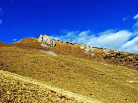 Alpine pastures and grasslands one the slopes of the Sevelerberg and Werdenberg mountains, Sevelen - Canton of St. Gallen, Switzerland (Schweiz)