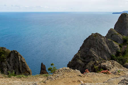 Rocky seashore. Sea nature landscape. View of the sea from the mount. Crimea