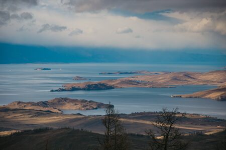 Virgin nature. Seascape or Mountain landscape. Freedom. Cloudy sky. Calming ocean water. Stunning panoramic view.