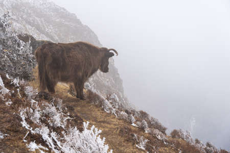 A yak in the Himalayan Mountains of Nepal.