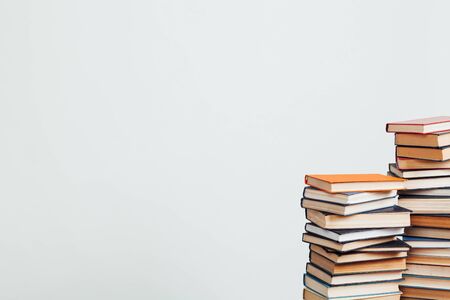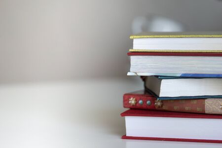 Close up of a bunch of books background with copy space minimal and reading concept