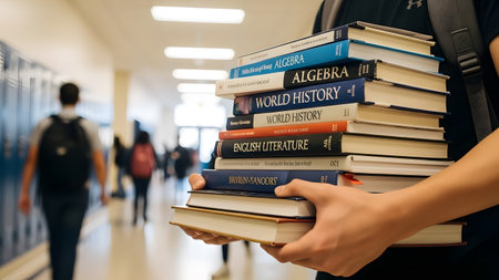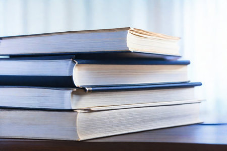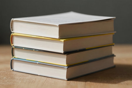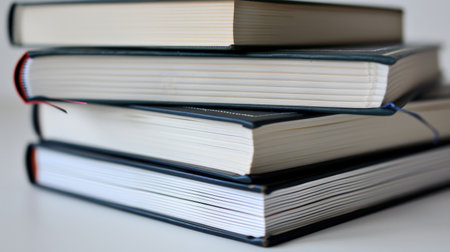 A stack of books sitting on top of each other. AI generative image.
