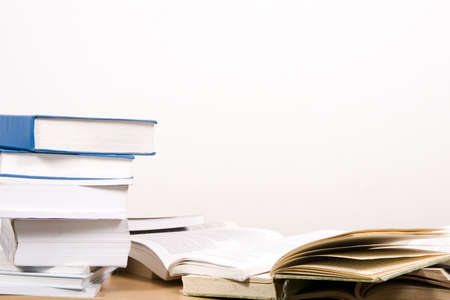 Books on the white table for background and text design