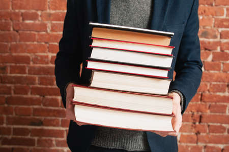 Stack of books in library. Education concept. Back to school.