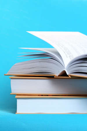 Close up books with blue background