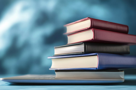 A stack of book on blue background