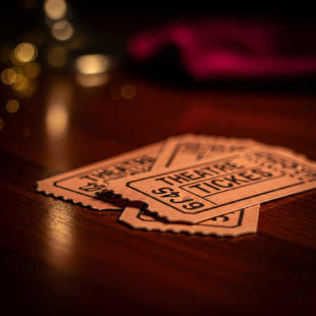 In the quiet darkness, a single beam of light reveals two forgotten tickets. They are a mysterious invitation to a past event, holding secrets and memories of a show long over.