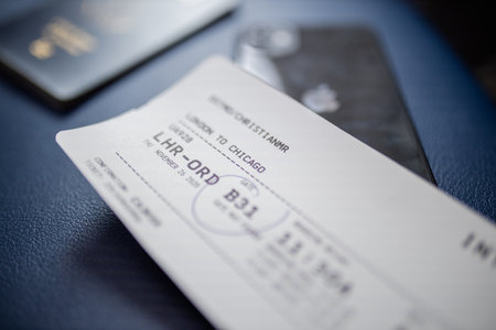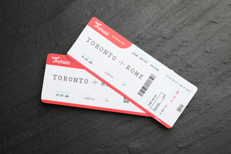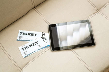 Airline tickets and passports on coffee table. View of foreign passports and boarding tickets.