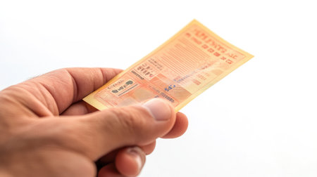 A close-up image of a hand holding a vintage ticket featuring a cautionary message. The ticket is set against a minimalistic background with soft natural light, creating an aesthetic appeal.