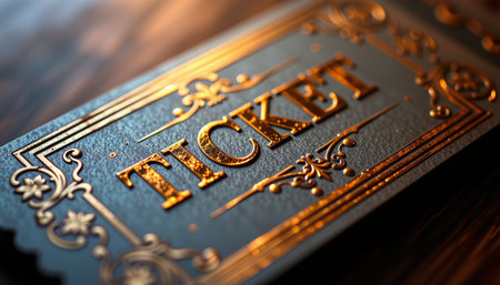 An elegant ticket design with intricate details and luxurious gold finish, perfect for events or special occasions