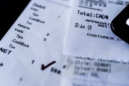 Madrid, Spain. April 1, 2024 Total check receipt for 39,70 euros lies on wooden table in a bar, restaurant. Payment for lunch dinner in a Spanish cafe