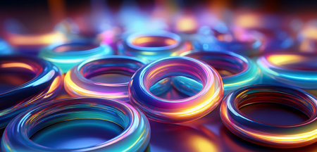 A stunning 3D representation of a colorful ring featuring a gradient spectrum against a dark background, perfect for modern design projects and artistic use.
