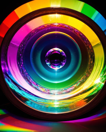 This stunning image showcases a colorful glass ring that reflects vibrant light against a dark background. The abstract design offers endless creative possibilities for art and decor projects.
