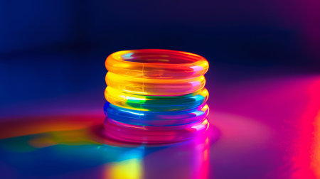 Colorful Neon Plastic Bangles in Vibrant Lighting Against Colorful Background