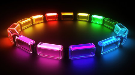 This vibrant abstract image features a glowing circular shape with a colorful gradient, perfect for background designs, creative projects, and modern aesthetics.