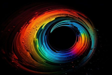 A stunning circular design displays a vivid array of colors in smooth, flowing lines against a black backdrop, captivating the viewers attention.