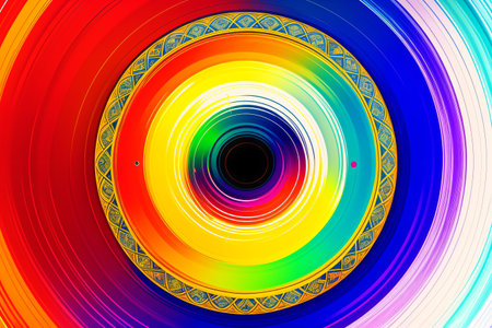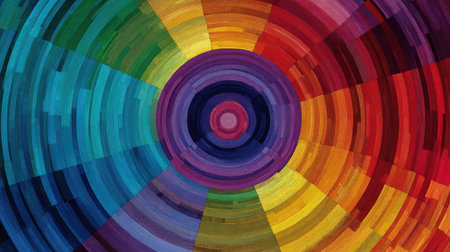 This captivating image presents a vibrant circular spectrum filled with rich rainbow hues, creating an engaging abstract design full of layered textures and dynamic energy.