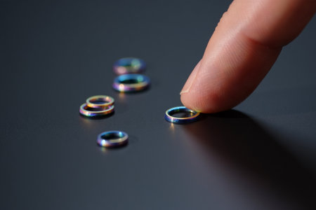 Jewelry design, colorful metallic finish, precision detail. Rainbow effect