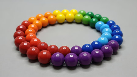 This stunning image features a vibrant rainbow ring casting a colorful shadow on a light background, symbolizing diversity and creativity. The elegant design showcases artistry and minimalism, perfect for various projects.
