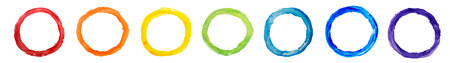 Watercolor motley circles set. Aquarelle round frames. Colorful templates. 7 rainbow colors.