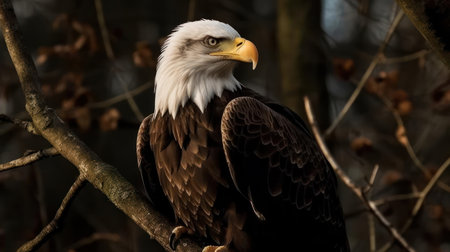 A majestic bald eagle perched on a tree branch created with Generative AI