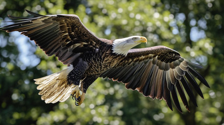Majestic bald eagle soaring in the wild, symbolizing freedom and strength generated by artificial intelligence