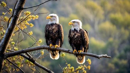 A majestic bald eagle perched on a tree branch created with Generative AI