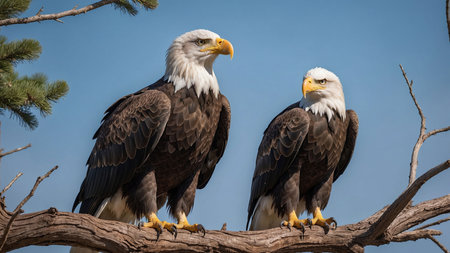 Mature White Headed Bald Eagles Sitting in Tree Washington